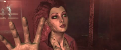 Infelizmente, a Rocksteady percebeu que isto era uma boa ideia mas decidiu repetir o processo mais duas vezes. Se as secções em pseudo 2D fossem mais variadas estes momentos poderiam ser clássicos. Mas após o primeiro estagnam. Mesmo assim, são as introduções às secções de plataformas que brilham. Quando o terceiro e último encontro chega não sabemos bem o que esperar. A primeira vez é sempre a primeira vez, a segunda faz um bom trabalho de lançar o holofote à origem de Batman enquanto nos prepara mais uma secção semelhante à anterior, desta vez com esqueletos a brotar do chão. Mas agora… Bem, agora é algo diferente. Especial até, não por ser radicalmente novo mas por conseguir apropriar um dos pontos fortes de Eternal Darkness: Sanity’s Requiem – a representação da insanidade através da corrupção gradual da percepção dos jogadores. O ecrã congela e dispara artefactos gráficos em várias direcções a sugerir um simples caso de corrupção de texturas. Depois a escuridão. Depois o regresso do filme de introdução… Ou será? O que parecia um erro técnico, um “reset” ao jogo, é na verdade um espelho retorcido que apresenta um mundo oposto aquele que Batman e os jogadores conhecem. Batman é levado através de uma secção brilhante – a salientar que, a partir do momento em que controlamos uma certa personagem em vez do cavaleiro das trevas, é estabelecido indirectamente algo recorrente na sua mitologia, a possibilidade de Batman e do seu arquiinimigo serem reflexos um do outro – e depois…