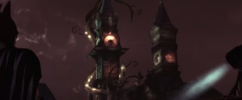 Em Arkham não são as personagens que fazem o lugar, é o lugar que vai fazendo (ou refazendo) a psicologia de todos os que por ele passam. Ao contário do Arkham visto pela lente Morrison/McKean, é uma instalação psiquiátrica mais ordenada, com uma visão mais corriqueira do que aquela proposta nos comics – por vezes desapontante a nível estético, com corredores e grandes salas modernas a serem subjugadas a uma referência visual alusiva ao estilo gótico de Gotham (como o excesso de gárgulas que saltam à vista). É mais uma ideia de arquitectura do que arquitectura em si se bem que, para ser justo, futuras explorações do asilo nos comics parecem ter tomado a mesma direcção. Mas o que realmente importa é como incita à exploração do espaço em si e à percepção de que é, na sua essência, uma entidade com vida própria.
